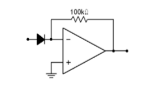 - Connect the log amplifier (Fig 5). Set supply to ±12 V. Set Vin = 1 V and record the output voltage across the diode.