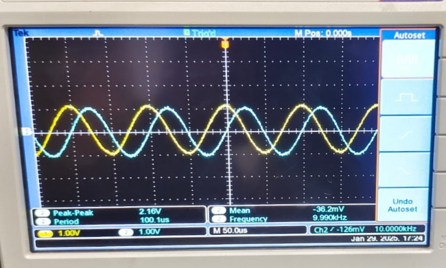 | Integrator (sine 10 kHz) | 90° phase-shifted cosine | Cosine output confirmed | Probe reversal caused sign flip |
