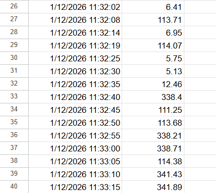 - Each distance measurement was logged in Google Sheets along with the corresponding timestamp.