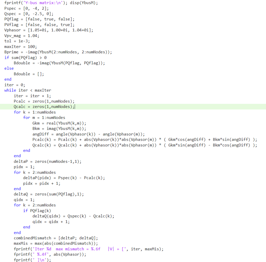 Figure 4: MATLAB Code for Fast-Decoupled Method — Q1 (Part 3)