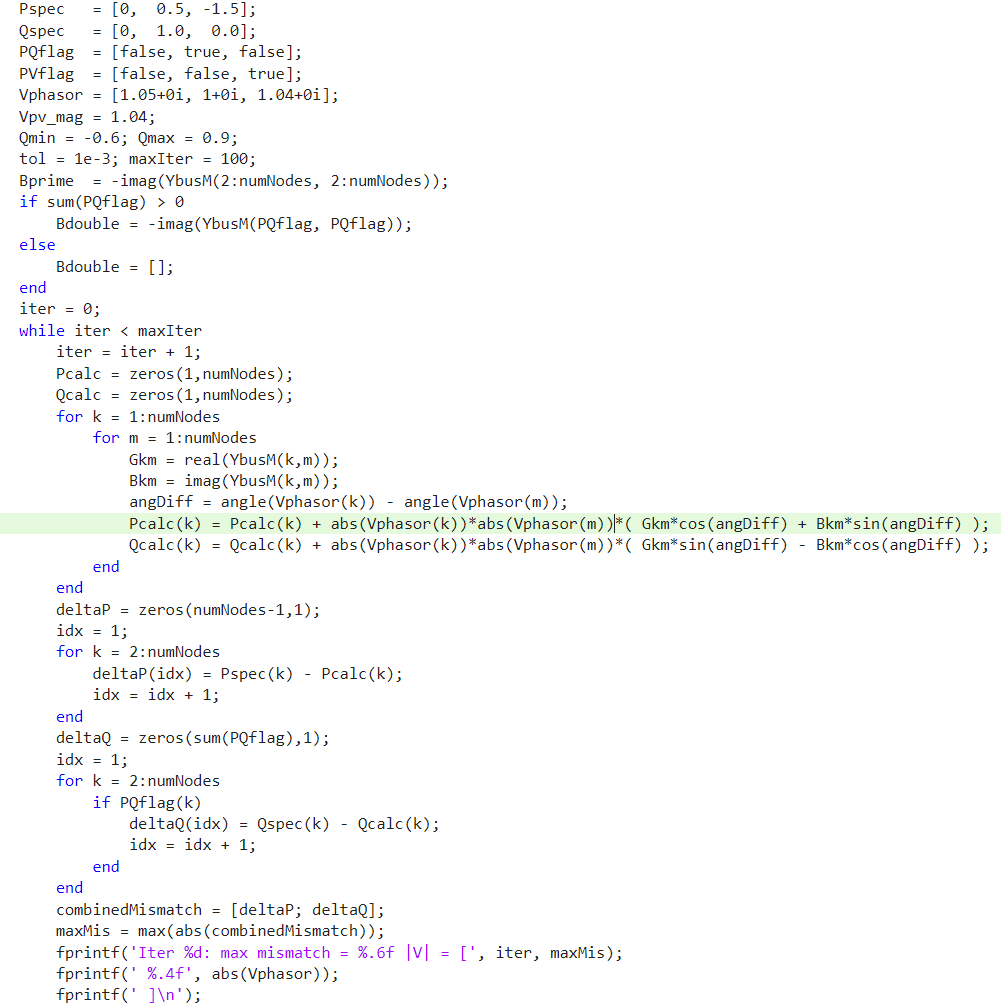 Figure 8: MATLAB Code for Fast-Decoupled Method — Q2 (Part 3)