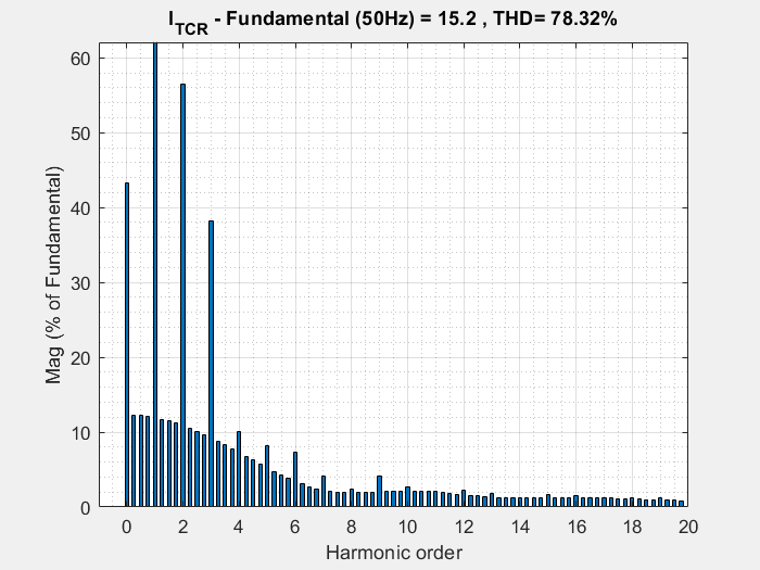 Figure 7: FFT plot of the TCR current ITCR showing THD