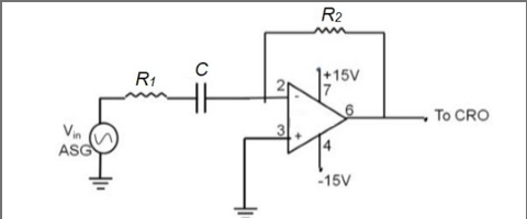 A: At very low frequencies, the capacitor impedance is very high and contributes little, so the phase shift is approximately 180° (due to the inverting configuration). As frequency approaches the cutoff frequency fc, the phase contribution of the RC network adds an additional −45°, giving a total of −225° (or equivalently −45° relative to the ideal inverting output). At very high frequencies, the additional phase lag approaches −90°, giving a total of −270°. So the RC network adds a phase lag that varies from 0° to −90° as frequency increases. - Q: If the observed cutoff frequency is lower than the designed value, what are the most likely causes and how would you correct each?