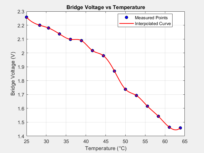 | Actual Temp (°C) | Measured Temp (°C) | Bridge Voltage (V) |