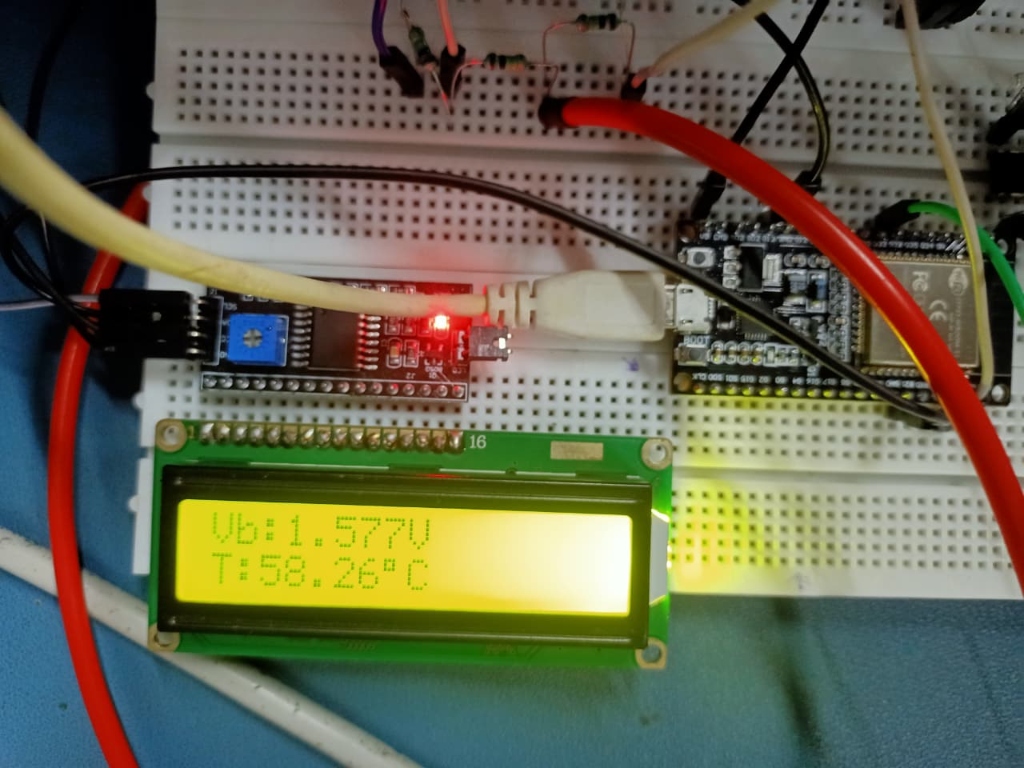 - The linear calibration equation T(°C) = −48.68 · Vbridge + 134.9 was successfully programmed into the ESP32. The negative slope reflects the NTC thermistor's characteristic of decreasing resistance (and thus decreasing bridge voltage) with increasing temperature.